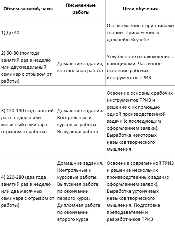 Чтобы ответить на этот вопрос, разберемся прежде всего в том, что такое «школа». В 1984/85 учебном году насчитывалось свыше 250 школ. Но работали они по разным программам. Ниже показаны особенности современных учебных программ по ТРИЗ.