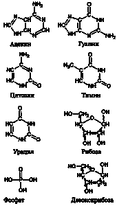 Рис. 28.4. Компоненты нуклеотидов РНК и ДНК.