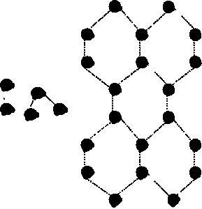 Рис. 28.12. Молекулы воды в жидком состоянии (слева) и в составе льда (справа). Водородные связи показаны линиями.