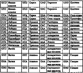 Таблица 28.1. Генетический код: соответствие нуклеотидных триплетов и аминокислот.