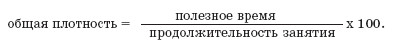 При определении общей плотности занятия учитывается время, которое затрачивается на выполнение движений, показ их, на объяснения воспитателя, перестроения и расстановку детей, а также на уборку спортивного инвентаря, т. е. все полезное время. Таким образом,