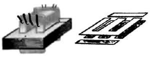 В некоторых батареях, например в батарее «Крона ВЦ», элементы имеют форму галеты, поэтому их называют элементами галетного типа. Внешний вид такой батареи и устройство ее элементов изображены на рис. 161. Oтрицательным электродом элемента служит цинковая пластинка, а положительным — поляризационная масса, состоящая из смеси двуокиси марганца и графита, которая обернута тонкой пористой бумагой. Между электродами имеется картонная прокладка. Галету пропитывают электролитом и прочно стягивают тонкой пленкой эластичного пластиката.
