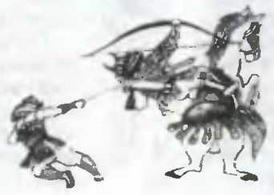Ниндзя в одежде странствующего монаха (слева) сражается с самураем