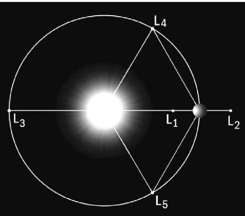 Рис. 4.19. Положение точек Лагранжа в системе «Солнце – планета».