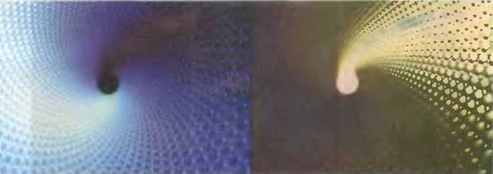 Французский физик Жан Шарон полагает, что за «черными дырами», этими безднами, разверстыми в пространстве, открывается иной мир, зеркально симметричный нашему. Элементарные частицы, населяющие этот мир, свободно движутся вверх и вниз по течению времени, а вот в пространстве они неподвижны. (Точно так же и мысль человека, заметим мы, выбираясь из «черной дыры», может мигом перенестись в прошлое или будущее, пока сам он по-обломовски лежит на диване.)