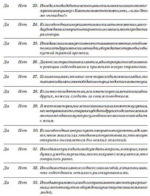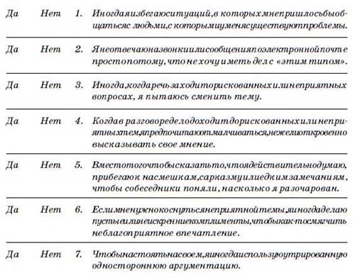 Инструкция. Приведенные вопросы призваны определить, как вы обычно реагируете, оказавшись вовлеченными в важный разговор. Прежде чем отвечать, представьте себе некую ситуацию на работе или дома. Затем давайте ответы, вспоминая, как вы обычно ведете себя в этих условиях.