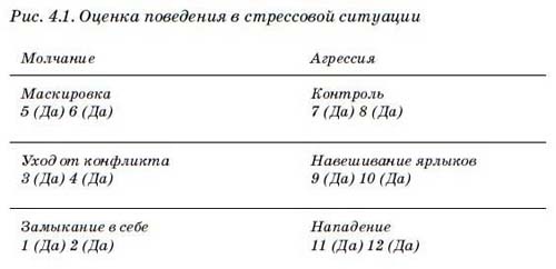 Итог теста на оценку поведения в стрессовой ситуации (рис. 4.1) подскажет, к каким формам молчания (ухода от конфликта) или агрессии (нападения) вы прибегаете чаще всего. Результаты (рис. 4.2) приведены таким образом, чтобы вы могли определить, какие главы этой книги будут наиболее полезными для вас.