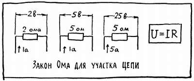 Основные соотношения, к которым мы пришли, четко и лаконично выражены в известном законе Ома: чем больше э. д. с., тем больше ток, чем больше сопротивление (чем хуже проводимость), тем меньше ток (рис. 5).