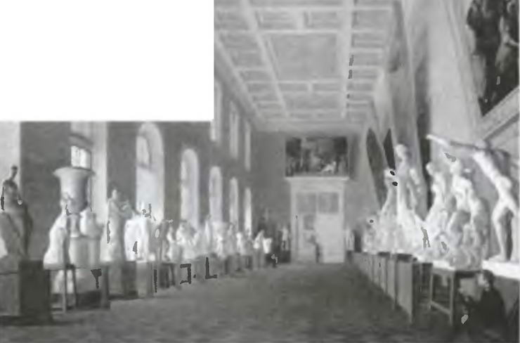 В первый же месяц после своего возвращения в Петербург Шувалов вместе со своим племянником Голицыным отправился в Петергоф, чтобы посмотреть на картины, сваленные в один из подвалов еще при Петре Федоровиче и провалявшиеся там 14 лет меж сгнивших седел и позеленелых подсвечников. Представьте себе, что должен был испытать Иван Иванович, извлекши на свет божий Рембрандта, Дюрера, Тинторетто! Он тут же повез драгоценные полотна конт- рофагеру (реставратору) Фанцельдту. Тот тоже огорчился. Не время, не стихии съели краски, сгубили красоту, а невежество да глупость людская: на лицах Христа и блудницы точно капусту рубили; "Притча о винограде", писанная на дереве, переломлена надвое. Я так живо вижу ту сиену: осенний, полузабытый (Екатерина его не любила) Петергоф, картины, выражение лиц мецената и реставратора!.. Откуда это впечатление? Занимаясь историей Великой французской революции, я обнаружила описание этого эпизода у племянника того самого реставратора Фанцельдта; молодой человек работал в девяностые годы с великим французским художником и якобинцем Давидом. Так вот именно Иван Иванович по возвращении своем практически сразу сделал финансовое "вливание" в реставрацию живописи, а позже икон, и с тех пор она начала набирать силу.