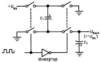 Данная конкретная схема выпускается в виде чипа конвертера напряжения 7662, о котором мы поговорим в разд. 6.22 и 14.07. Это устройство, названное «инвертором», превращает напряжение «высокого» уровня в напряжение «низкого» уровня, и наоборот. В следующем разделе мы покажем, как делается один из таких инверторов (и мы фактически подготовим вас к тому, что вы быстрее поймете, как ускорить их работу, о чем идет речь в гл. 8-11!).