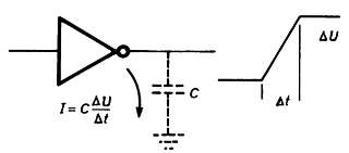 Существуют два механизма, вызывающие появление тока стока. Во время переходных процессов через выход КМОП-схемы должен проходить кратковременный ток I = CdU/dt, чтобы зарядить имеющуюся на выходе емкость той или иной величины (рис. 3.60).