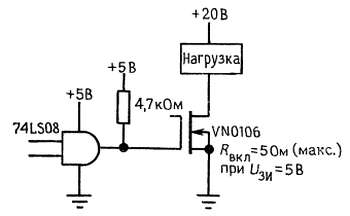 Рис. 3.67. МОП-транзисторы способны переключать мощные нагрузки, при управляющих сигналах с уровнями цифровых логических схем.