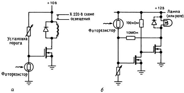 Рис. 3.73. Мощные переключатели, работающие от окружающего освещения.
