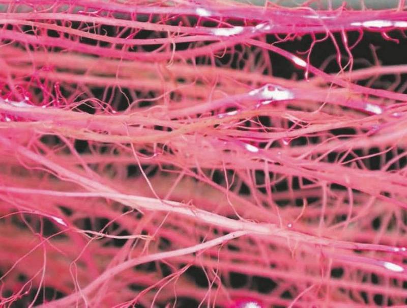 Корневая система может состоять из миллионов ростков. Изображение позволяет увидеть небольшой кусочек сложнейшей корневой системы кукурузы.
