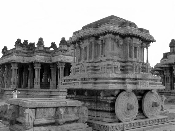 Храм Витхала. Расположен на востоке от базарной площади Хампи. Известен своими «музыкальными» колонами. В храме много красивых скульптур. Особенно известна каменная колесница и скульптура Гаруды.