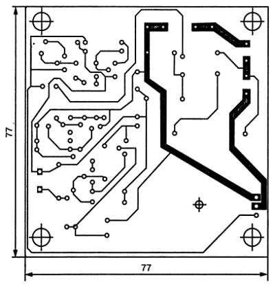 Все детали терморегулятора размещены на печатной плате размером 77x77 мм. Печатная плата приведена на рис. 10.