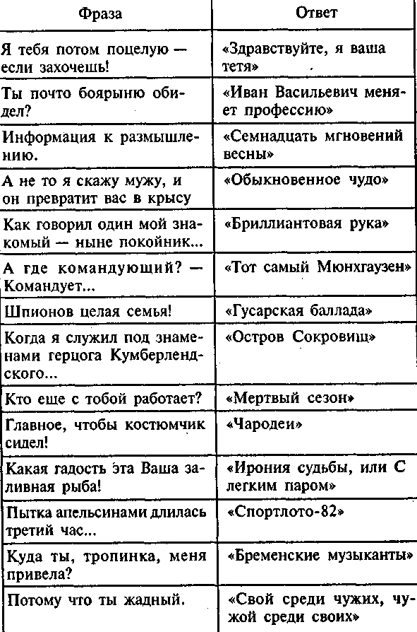 Постепенно игроки переходят на строки из песен, частушек, мультфильмов. Это отнюдь неплохо. Не следует прерывать игры, даже стоит поощрить игроков — игра приобретает новый темп и интерес.