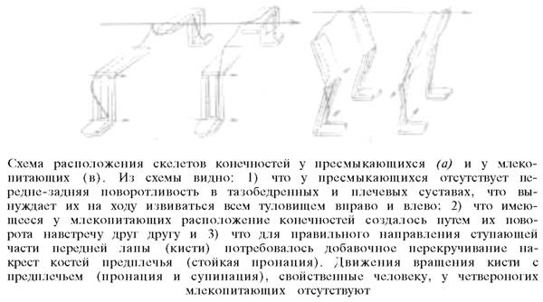 Конечности явились очень глубоким, принципиальным новшеством. Они появились в ту пору, когда древние побудительные причины к члениковому (сегментному) строению тела в большей степени выдохлись и развитие конечностей пошло как бы перешагивая через развалины этого старинного принципа строения, еще сохранявшегося на древнейшей части тела — туловище.
