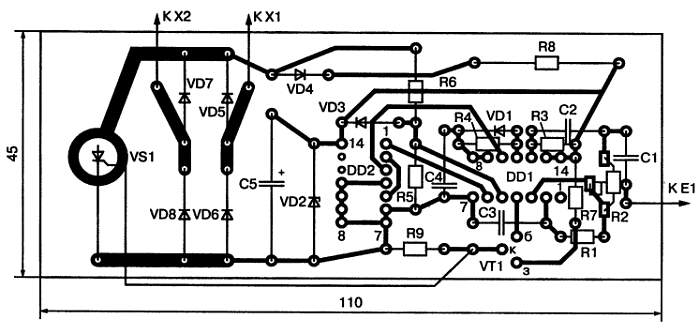 Рис. 41. Эскиз печатной платы сенсорного выключателя