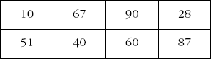 10, 67, 90, 28, 51, 40, 60, 87, 84.
