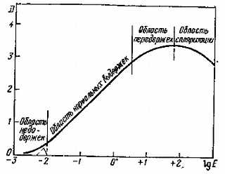 Характеристическая кривая состоит из нескольких участков. Начальный участок, где кривая идет полого, называется участком или областью недодержек. Следующий участок, где кривая близка к прямой, — это область нормальных выдержек (времени экспозиции). Наконец, верхний участок, где наклон кривой снова уменьшается, — область передержек.