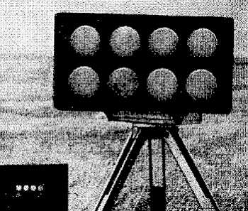Фонарь устанавливается в 10–12 м от фотоаппаратов, которыми мы будем вести съемку серебристых облаков, так чтобы он был на 2° выше линии горизонта. Лампы фонаря включаются в сеть или питаются от аккумуляторов. В цепь вводятся реостат, которым можно регулировать яркость ламп, и микроамперметр. Предварительно с помощью движка реостата надо подобрать яркость ламп так, чтобы при фотографировании фонаря самое яркое отверстие уже попадало в область передержек, а самое слабое было недодержано. Эго даст нам гарантию, что область нормальных времен экспозиции будет полностью охвачена изображениями 8 отверстий фонаря.
