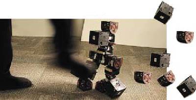 Чтобы продемонстрировать возможности самособирающегося робота ckBot, профессор так стукнул по нему, что тот рассыпался на части. А через некоторое время рассыпавшиеся элементы сами собой начали подползать друг к другу, и вскоре вся конструкция собралась заново. Через некоторое время робот предстал перед журналистами «как новенький».