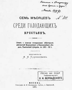 Обложка книги А. А. Корнилова с отчетом о помощи голодающим