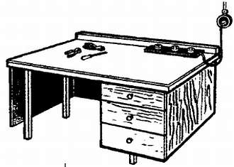 Теперь надо определить и оборудовать постоянное место, где не мешая другим и не нанося вреда домашним вещам, можно было бы с удобством пилить, строгать, клеить, сверлить, паять, красить — словом, мастерить. Это будет твой рабочий уголок.