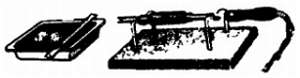Рекомендую для паяльника сделать подставку, а припой и канифоль держать в баночке из алюминия (рис. 126). Эти простые приспособления создадут определенные удобства в работе, а паяльник, припой и канифоль будут содержаться в чистоте.