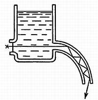 Рис. 37. Луч света, направляемый через сосуд и попавший в струю воды, распространяется внутри струи, многократно испытывая полное отражение от ее поверхности