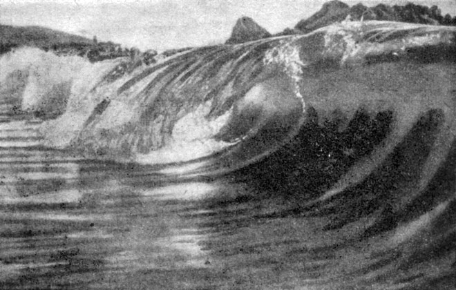 Не всегда волны, набегающие на берег, могут служить предметом восторженного восхищения поэтических натур. Ураганы, буйствующие в океане, нередко посылают на берег такие разрушительные валы, которые не оставляют времени не только для наблюдения, но и для спасения жизни.