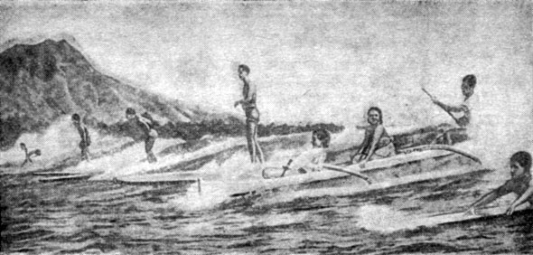 У мелких отлогих берегов буруны нередко образуются на расстоянии 1-2 км от берега. Если в таких местах зыбь, поступающая с моря, достаточно сильна, крупные одиночные волны пробегают все это расстояние со скоростью 20-25 км/час, а иной раз и больше. На Гавайских островах местные жители научились ими пользоваться. Возвращаясь с моря, рыбаки приближаются к бурунам и, улучив момент, стараются попасть на гребень такой волны. В несколько минут он выносит их на берег. Ребятишкам эти волны служат для забавы. На легкой лодочке или просто на широкой доске, высоко поднявшись над уровнем моря, они мчатся к берегу на гребне волны со скоростью быстроходного моторного катера. Отхлынувшая волна оставляет их на сухом месте. "Езда на прибое" - это старинный национальный вид спорта на Гавайских островах. Он приобрел широкую популярность среди туристов, посещающих океанское побережье и острова, где прибойные волны достигают большой высоты.