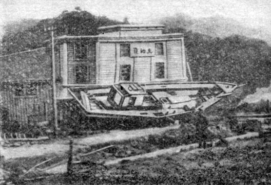 После цунами в марте 1933 г. в Японии рыболовное судно, выброшенное волной далеко на берег, загородило вход в кинотеатр