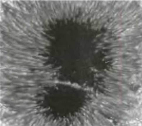 Солнечное пятна диаметром 25 тысяч километров, сфотографированное е 2004 году шведскими астрономами