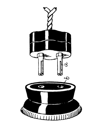 Все нижеописанные работы по приспособлению такого тока для тех или иных целей должны вестись не включая установки в сеть до полного окончания работы, то есть с разомкнутыми штепселями, вилки которых а должны быть вынуты из гнезд b (рис. 11).