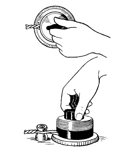 Коммутаторы для сильного тока берутся покупные, монтированные внутри эбонитовых коробочек (рис. 12). Включение и выключение соединенных с ними ламп и других приборов производится простым поворотом выключателя (щелканьем) на пол-окружности, всегда в одну и ту же сторону по направлению часовой стрелки. Это не замок, который запирается поворотом ключа в одну сторону, а открывается поворотом в другую. Этого не следует забывать.
