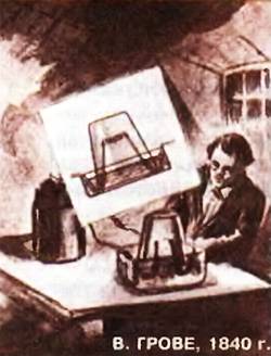 В 1838 году Жобар из Брюсселя предложил получать свет, накаляя током в безвоздушном пространстве тонкую угольную палочку. Через несколько лет идею осуществил его ученик, горный инженер де Шанжи. Попутно, в 1840 году Грове сделал лампу накаливания с платиновой проволокой (рис. 1).