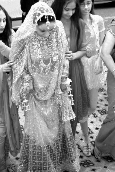 Авторы книги бывали на многих свадьбах, и женщины семьи всегда приглашали взглянуть на невесту. Заходишь в комнату, видишь в окружении подруг и сестер ярко одетое и богато украшенное существо, с лицом, завешенным гирляндами цветов, дождем ниспадающих со свадебной короны. «Подойдите, посмотрите на нее», – просят все.