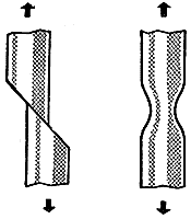Хрупкие вещества, которыми мы пользуемся в повседневной жизни, - стекло, фаянс, кирпич, бетон, некоторые пластмассы - вполне удовлетворяют нас. Однако для изготовления различного рода машин мы обычно предпочитаем пластичные металлы. Хрупкие тела разрушаются путем полного разделения двух соседних слоев атомов или молекул под растягивающим напряжением, остальной объем материала при этом не нарушается. Поведение металла напоминает в чем-то поведение пластилина. Еще до разрушения, то есть до разделения образца на две части, в объеме материала развивается интенсивное течение, подобное течению вязкой жидкости. В это время соседние атомные слои, не разделяясь, сдвигаются друг относительно друга подобно колоде карт.