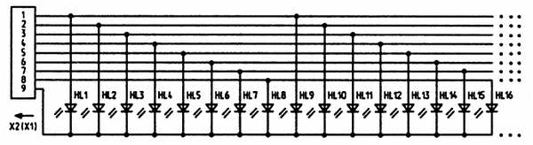 С помощью соединителя XI основная часть автомата подключается к соединителю Х2 гирлянды, фрагмент схемы которой показан на рис. 15.