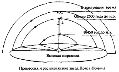 Дальше — больше. Используя сложную компьютерную программу, способную определить вызванные прецессией изменения в наклонении всех видимых звезд в любой части мира в любую эпоху, Бьювэл установил, что положение пирамид приближенно воспроизводит положение звезд Пояса Ориона всегда, но точно соответствует ему только в одном случае: