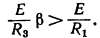 Кроме того, если этот транзистор находится в состоянии насыщения, потенциал его коллектора практически равен нулю, а ток коллектора приблизительно равен E/R1. Поэтому для выполнения условия насыщения достаточно иметь такой коэффициент усиления транзистора по току (который мы обозначаем буквой β), чтобы произведение тока базы E/R3 на β было больше максимального тока, который сможет пропустить коллектор, т. е.