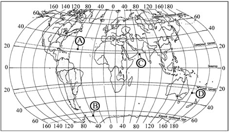 1) 8° с.ш. 2) 35° с.ш. 3) 55° ю.ш. 4)80° ю.ш.