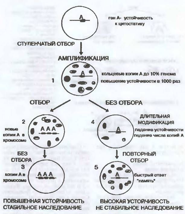 Неканонические наследственные изменения, сезонные с амплификоцией генов под действием отбора и цитостатинам.