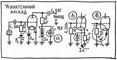 На постоянное напряжение и постоянную составляющую анодного тока конденсатор развязки не оказывает никакого влияния. Что же касается переменной составляющей, то теперь она с нагрузки замкнется прямо на шасси, то есть на катод. Таким образом, наш конденсатор как бы развязывает сложный узел, отводит переменную составляющую от анодной батареи, где этой составляющей, грубо говоря, нечего делать.