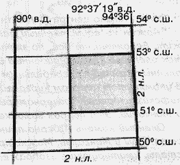 94°37'19" в.д. – меридиан восточной стороны геодезического квадрата;