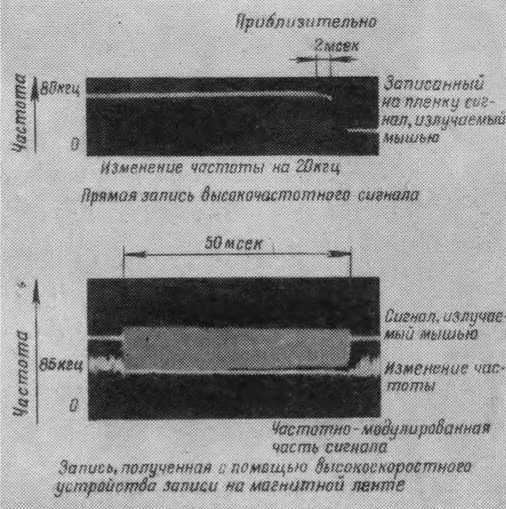 Рис. 8. Запись на магнитной ленте сигналов, излучаемых мышами-подковоносами.