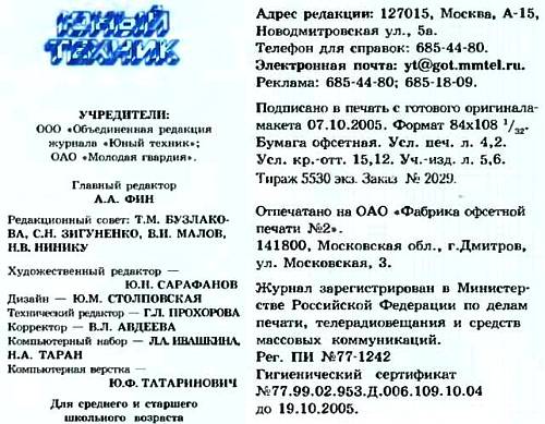 К сожалению, на вопросы конкурса «ЮТ» № 6 — 2005 г. ответить правильно не сумел никто. Приз конкурса — прозрачные часы — будет разыгран в одном из следующих номеров.