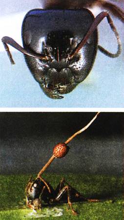 Невероятная связь существует между грибами Ophiocordyceps unilateralis и муравьями-древоточцами Camponotus leonardi. Грибы, оказывается, способны полностью поработить насекомых, заставить их двигаться по своему усмотрению.
